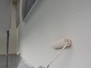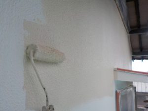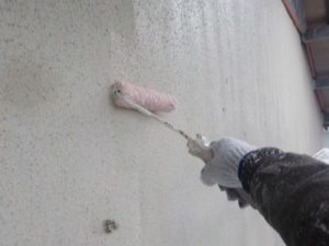 塗膜のひび割れや、壁のひび割れなどを目埋めするために中塗り剤を塗ります。