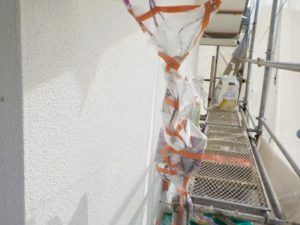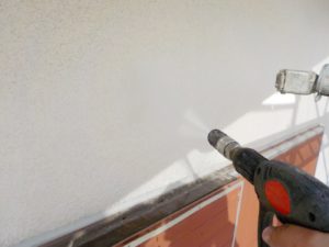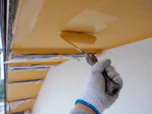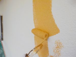 塗膜のひび割れや、壁のひび割れなどを目埋めするために中塗り剤を塗ります。