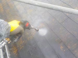 屋根材を自然環境から守るため、上塗り剤を塗り保護します。