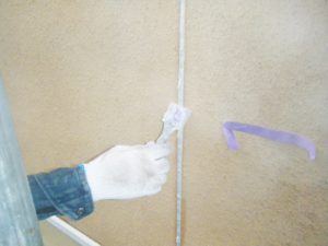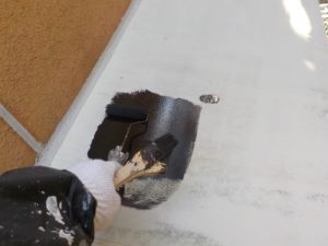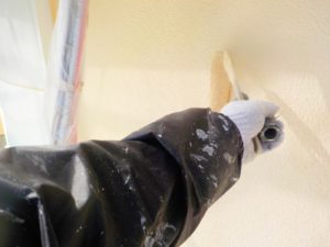 塗膜のひび割れや、壁のひび割れなどを目埋めするために中塗り剤を塗ります。