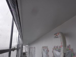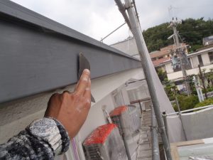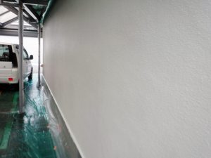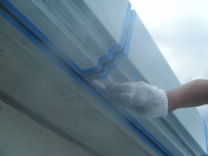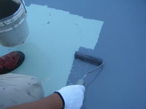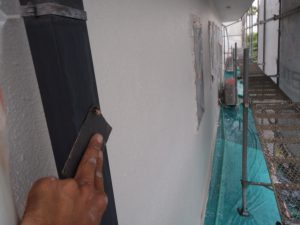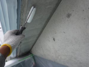 塗膜のひび割れや、壁のひび割れなどを目埋めするために中塗り剤を塗ります。
