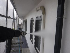 上に塗る塗料の密着を良くするため、旧塗膜・汚れを落とし細かな傷を付けます。