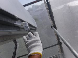 鉄鋼がさびると資材の腐食が促進するため、錆止め剤を塗ります。