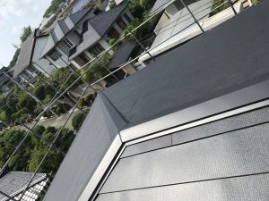 屋根材取付後、木材を棟に打ち込み、棟板金を施工します。