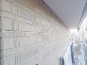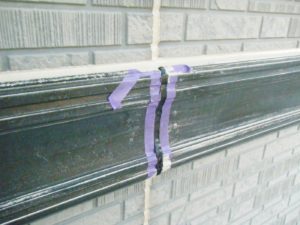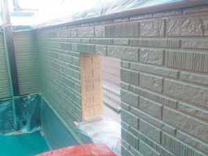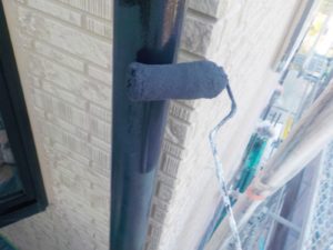 外壁材を保護し、上に塗る塗料の密着を良くするため、下塗り剤を塗ります。