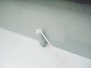 塗膜のひび割れや、壁のひび割れなどを目埋めするために中塗り剤を塗ります。