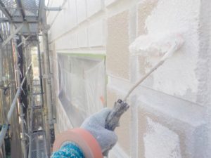 塗膜のひび割れや、壁のひび割れなどを目埋めするために中塗り剤を塗ります。