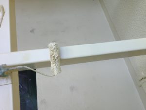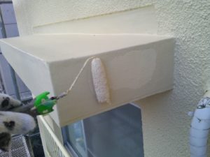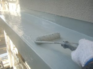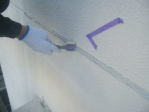 塗膜のひび割れや、壁のひび割れなどを目埋めするために中塗り剤を塗ります。