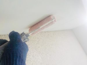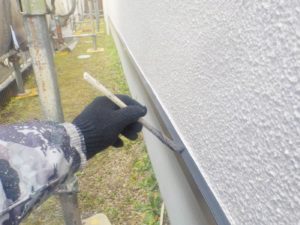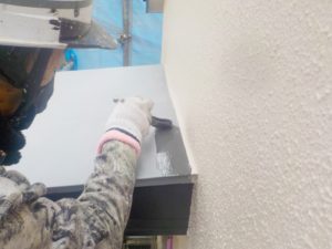 塗膜のひび割れや、壁のひび割れなどを目埋めするために中塗り剤を塗ります。