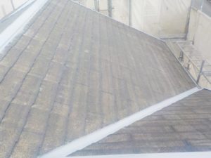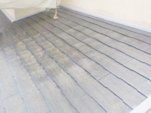 屋根材を保護し、上に塗る塗料の密着を良くするため、下塗り剤を塗ります。