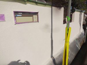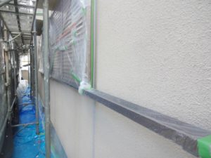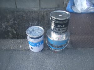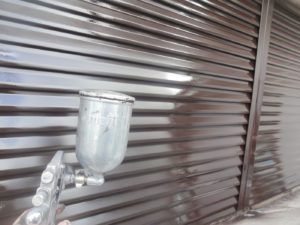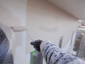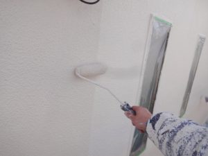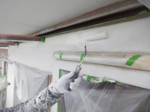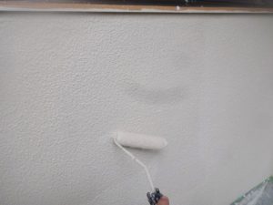 塗膜のひび割れや、壁のひび割れなどを目埋めするために中塗り剤を塗ります。