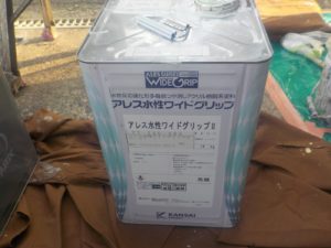 資材を保護し、上に塗る塗料の密着を良くするため、下塗り剤を塗ります。