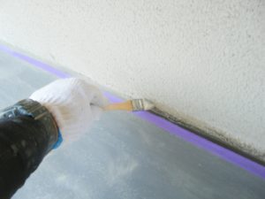 塗膜のひび割れや、壁のひび割れなどを目埋めするために中塗り剤を塗ります。