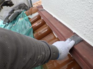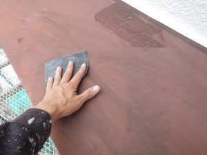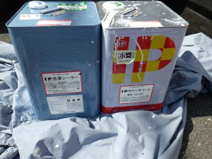 塗膜のひび割れや、壁のひび割れなどを目埋めするために中塗り剤を塗ります。
