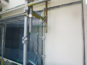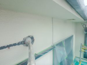 塗膜のひび割れや、壁のひび割れなどを目埋めするために中塗り剤を塗ります。