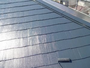 屋根材を保護し、上に塗る塗料の密着を良くするため、下塗り剤を塗ります。