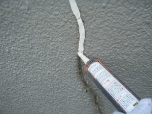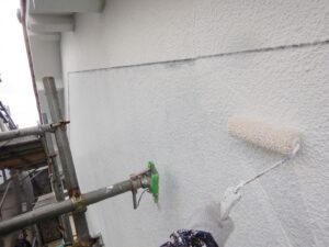 塗膜のひび割れや、壁のひび割れなどを目埋めするために中塗り剤を塗ります。