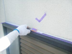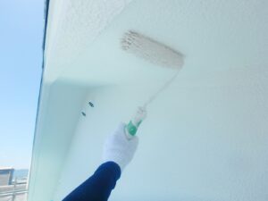 塗膜のひび割れや、壁のひび割れなどを目埋めするために中塗り剤を塗ります。