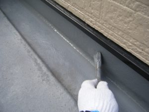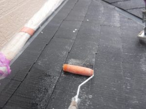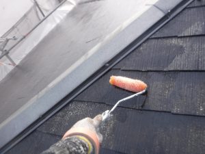 屋根材を保護し、上に塗る塗料の密着を良くするため、下塗り剤を塗ります。
