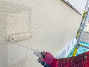 塗膜のひび割れや、壁のひび割れなどを目埋めするために中塗り剤を塗ります。