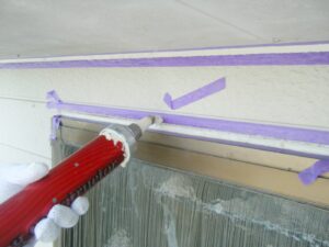 気密性や防水性を高めるため、建物の継ぎ目やひび割れなどの隙間を充填します。