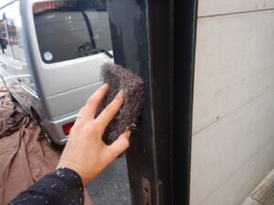 上に塗る塗料の密着を良くするため、旧塗膜・汚れを落とし細かな傷を付けます。