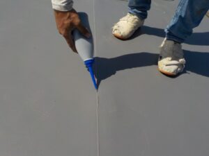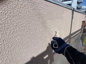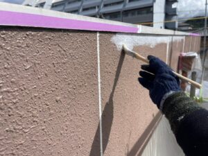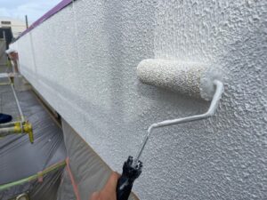 塗膜のひび割れや、壁のひび割れなどを目埋めするために中塗り剤を塗ります。