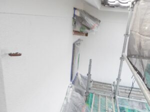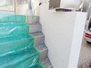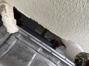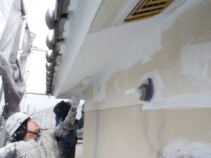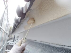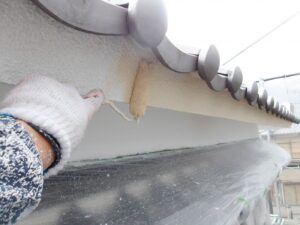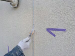 塗膜のひび割れや、壁のひび割れなどを目埋めするために中塗り剤を塗ります。