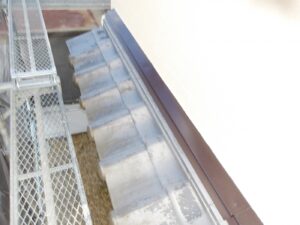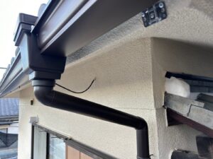 (左)縦樋金具を取り付けます。(右)軒樋を乗せます。