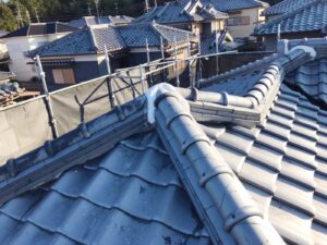 (右)瓦を支える基盤を作ります。なんばんは土と違い水の吸水性が低く、乾燥により硬化することでセメントのような強さが出ます。