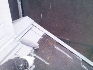 屋根材を保護し、上に塗る塗料の密着を良くするため、下塗り剤を塗ります。