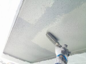 塗膜のひび割れや、壁のひび割れなどを目埋めするために中塗り剤を塗ります。