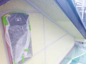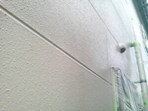 外壁材を保護し、上に塗る塗料の密着を良くするため、下塗り剤を塗ります。