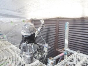 下地の強化・中性化・上塗材の密着不良・造膜不良等を防止するため、下地調整塗材を塗ります。