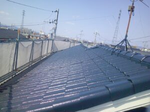 屋根材を自然環境から守るため、上塗り剤を塗り保護します。