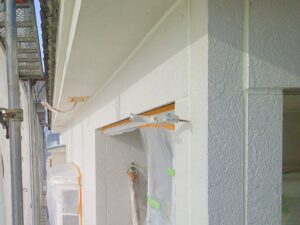 塗膜のひび割れや、壁のひび割れなどを目埋めするために中塗り剤を塗ります。