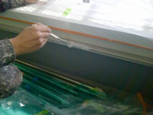資材を自然環境から守るため、上塗り剤を塗り保護します。<