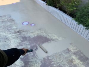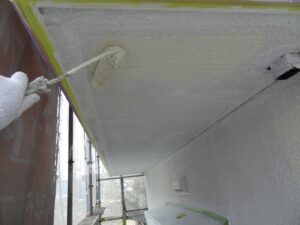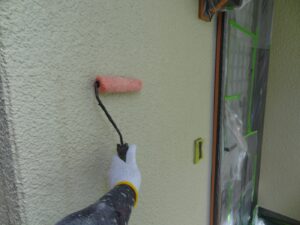 塗膜のひび割れや、壁のひび割れなどを目埋めするために中塗り剤を塗ります。