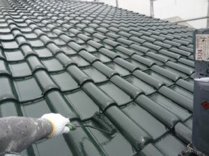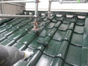 屋根材を自然環境から守るため、上塗り剤を塗り保護します。