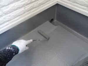 資材を保【下塗り】護し、上に塗る塗料の密着を良くするため、下塗り剤を塗ります。
