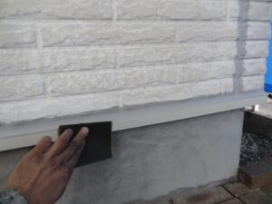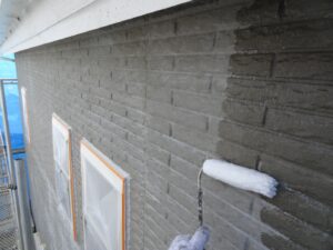 下地の強化・中性化・上塗材の密着不良・造膜不良等を防止するため、下地調整塗材を塗ります。