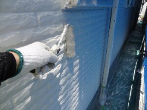 塗膜のひび割れや、壁のひび割れなどを目埋めするために中塗り剤を塗ります。