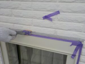 外壁材を保護し、上に塗る塗料の密着を良くするため、下塗り剤を塗ります。