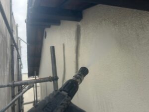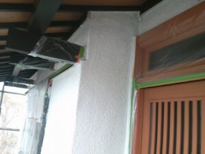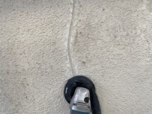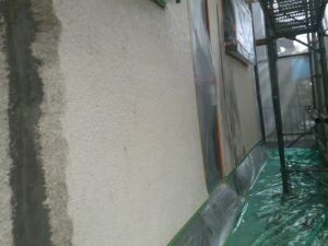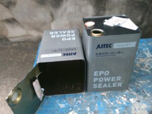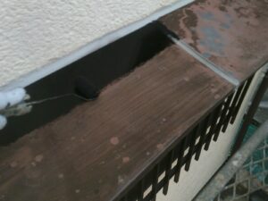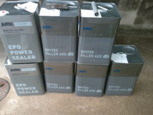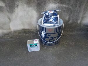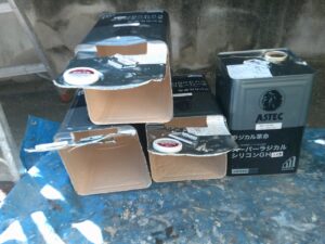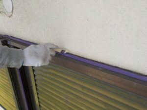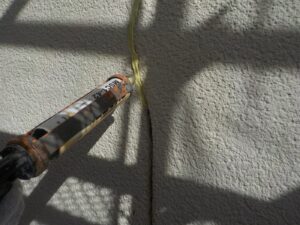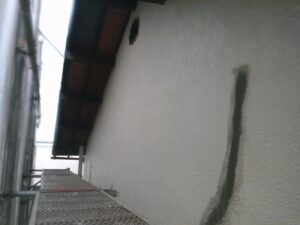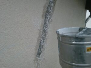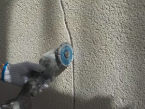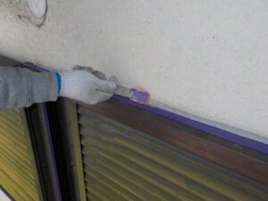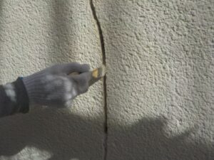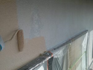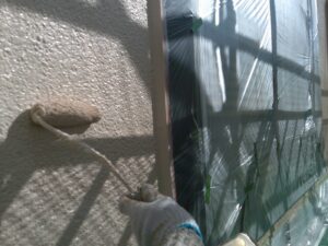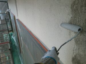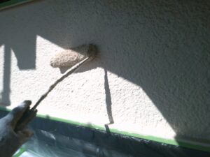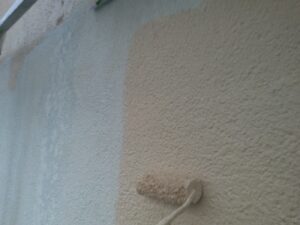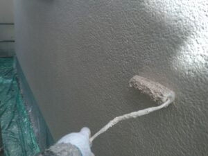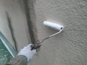 塗膜のひび割れや、壁のひび割れなどを目埋めするために中塗り剤を塗ります。