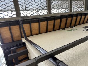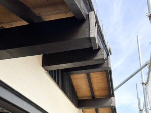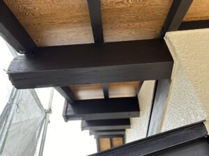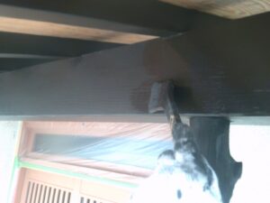資材を自然環境から守るため、上塗り剤を塗り保護します。