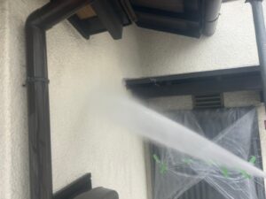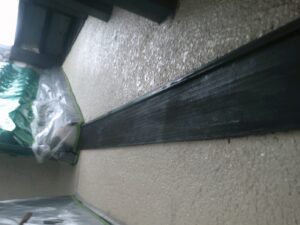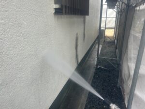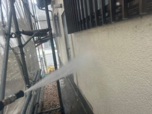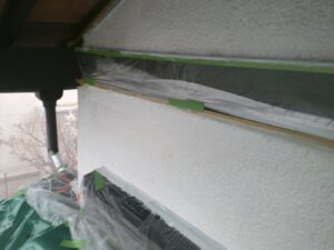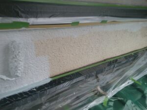 外壁材を保護し、上に塗る塗料の密着を良くするため、下塗り剤を塗ります。
