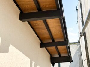 外壁材を自然環境から守るため、膜厚と層をつけ保護します。