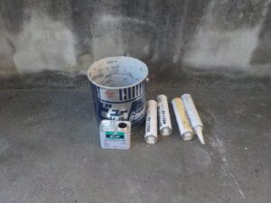(左)資材を保護し、上に塗る材料の密着を良くするために塗ります。(右)気密性や防水性を高めるため、建物のひび割れなどの隙間を充填します。
