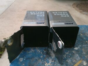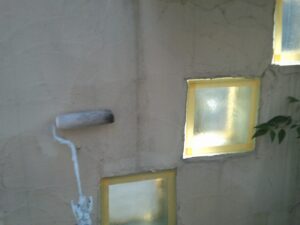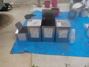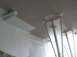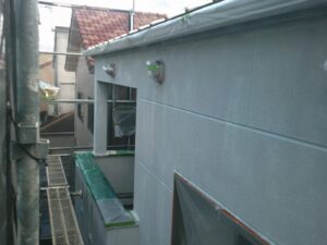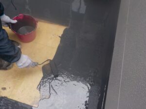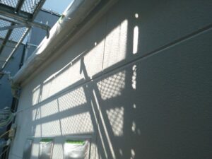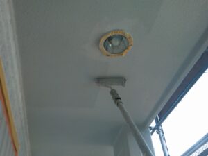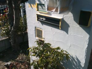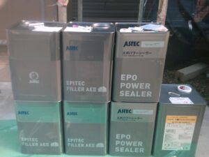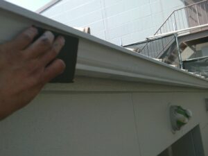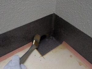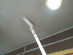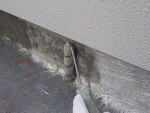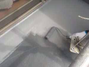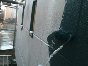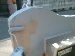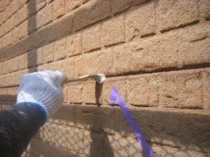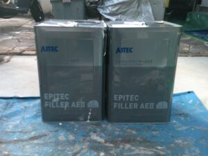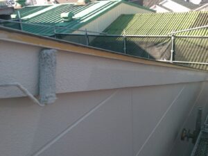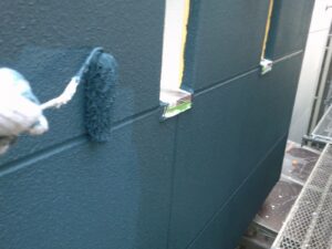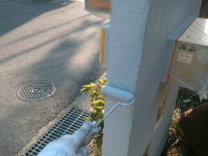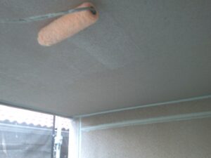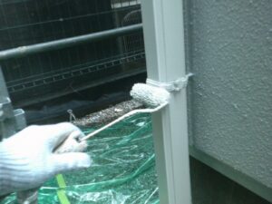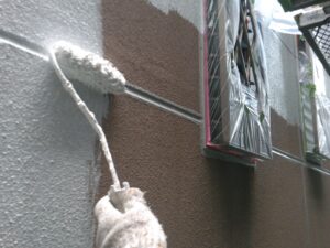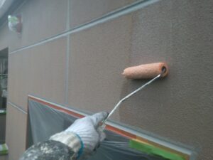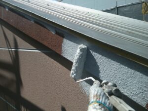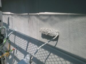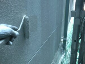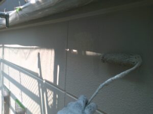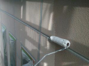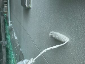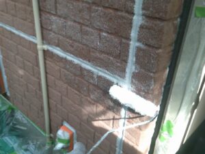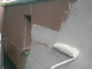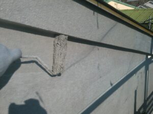 塗膜のひび割れや、壁のひび割れなどを目埋めするために中塗り剤を塗ります。
