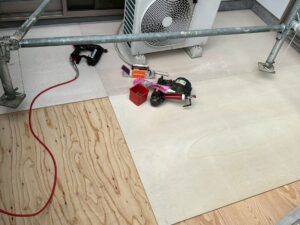 (右)資材を保護し、上に塗る材料の密着を良くするために塗ります。